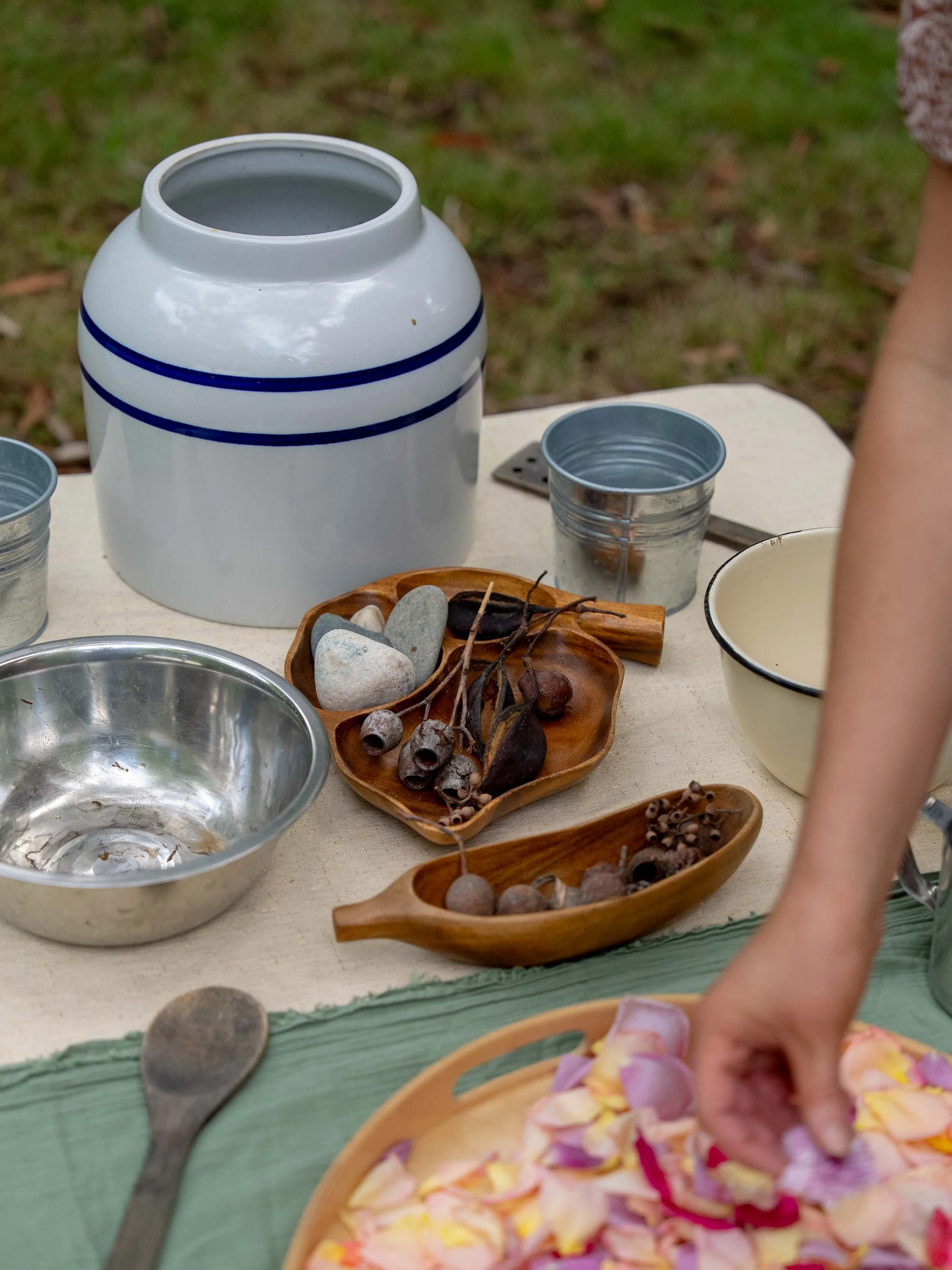 We have been singing songs about the weather and change of season during our mat time, and we have been enjoying some rainy mornings which has been exciting to see! We have enjoyed some weaving of leaves and flower paintings, and we even spent lots of time one morning watching a big snail in our garden, enjoying the rain.
