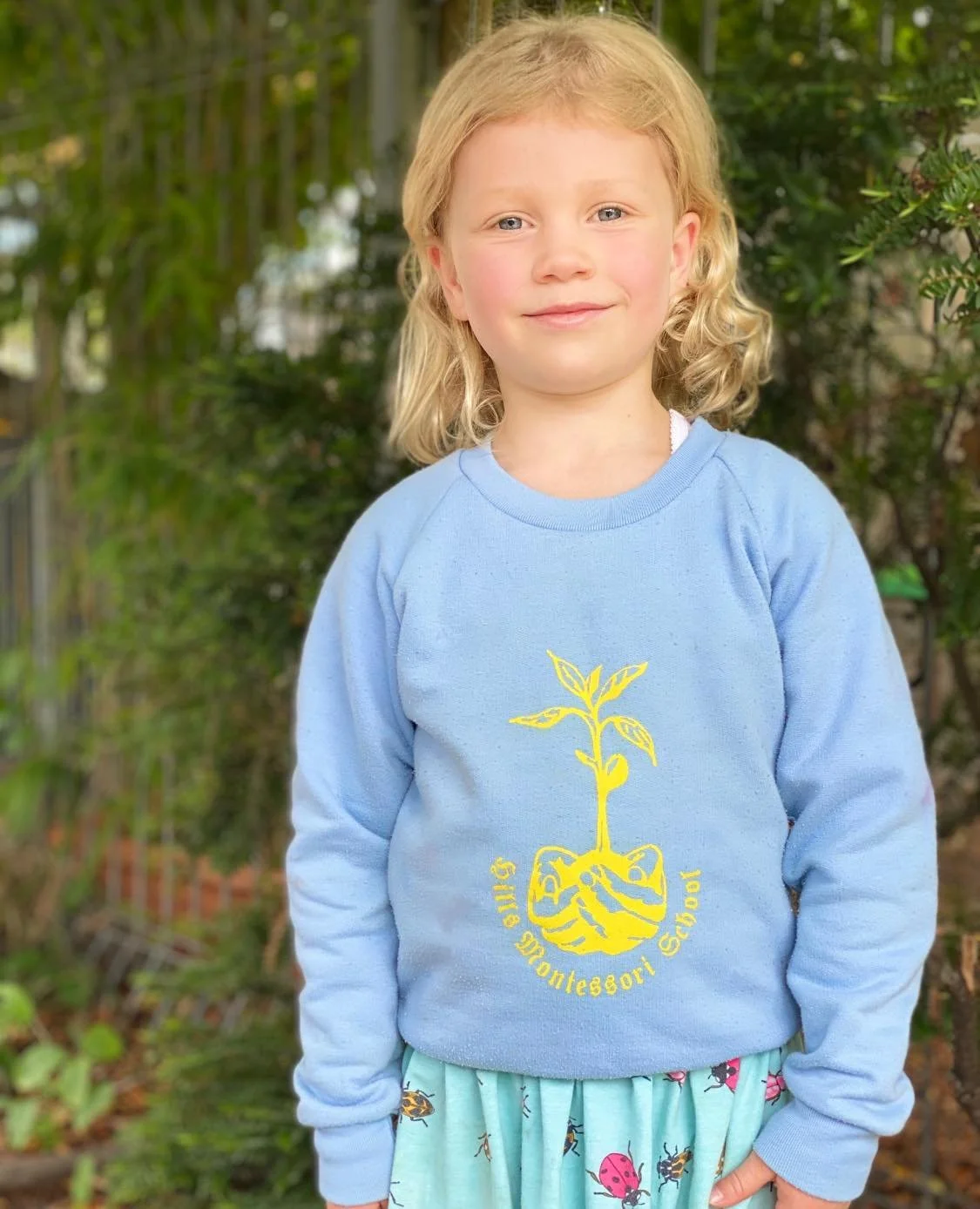 This is Holly wearing her mum’s Hills Montessori jumper from her time at the school.